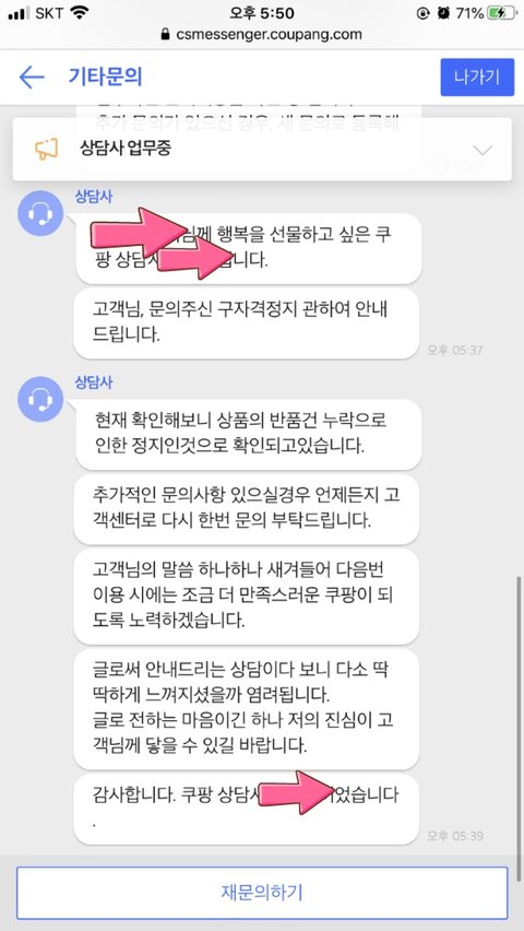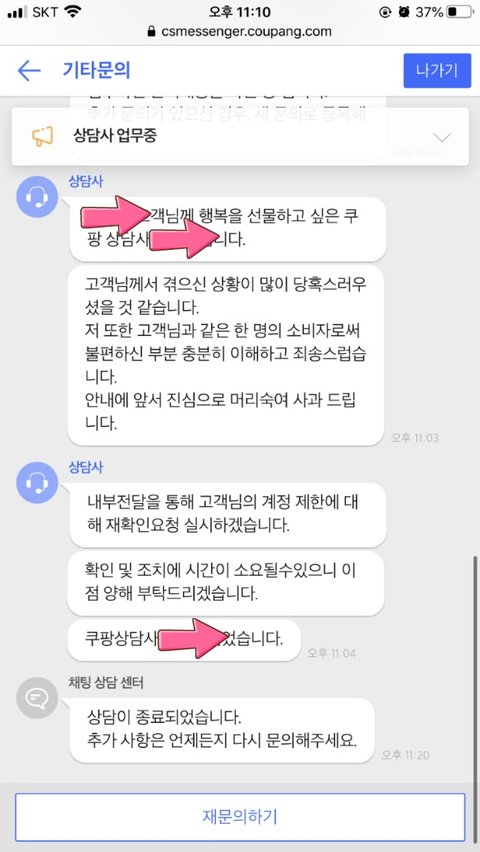 너무 화가 나서 다시 한번 더 문의 넣었습니다.