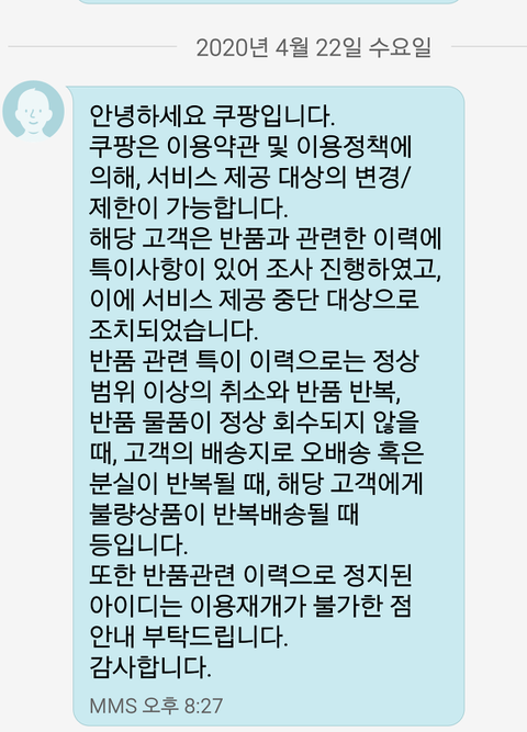 지금 쿠팡 대응에 의하면 저는 확실치도 않는 반품 누락건 때문에 계정 제한을 당했고 엄밀히 따지면 도둑 취급을 받고 있는 셈입니다.