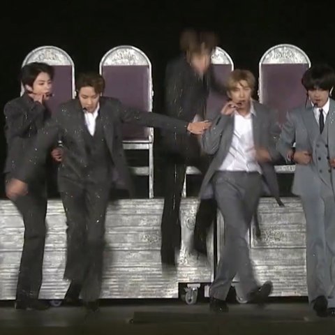 무대 바닥 이상한거 캐치 하고 남준이 툭툭 쳐서 알려줌