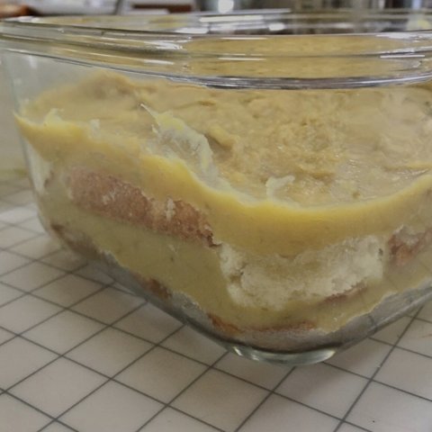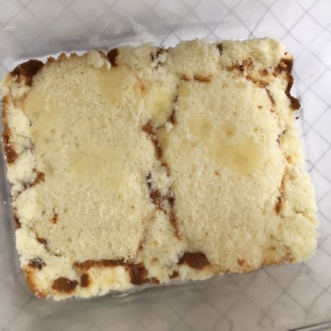 카스테라 1개를 삼등분해서 그 중 2장을 락앤락통에 깔고, 빈 부분은 나머지 1장을 이용해서 채워준다.