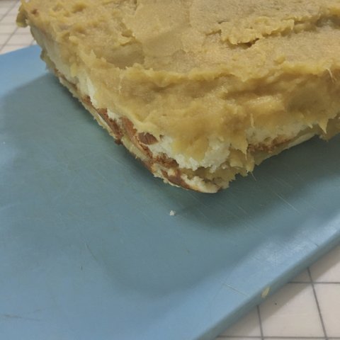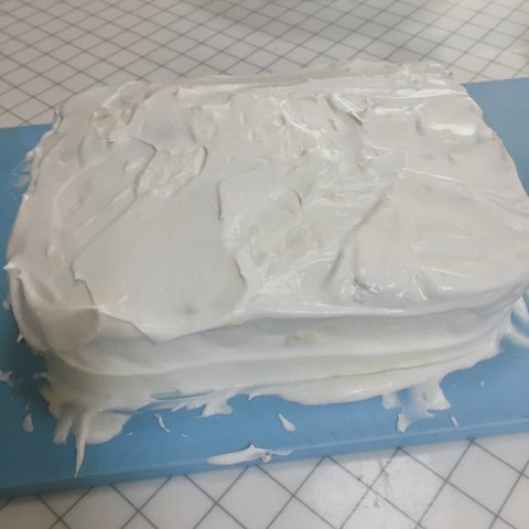 10. 굳혀놓았던 케이크를 꺼내고 크림을 발라준다