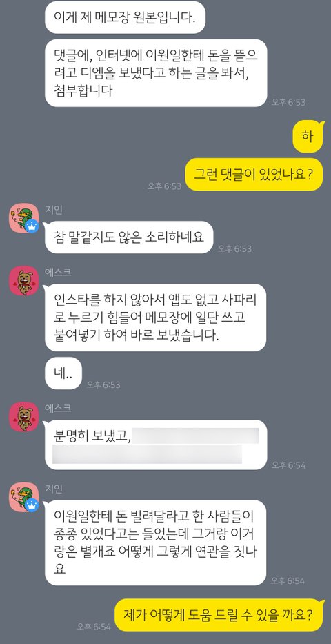 다른 피해자분들에게도 이런 말투로 사과하실 생각이시면 생각 고쳐먹으시길 바랍니다. 일일이 지적하고 싶지 않아서 참았는데 제가 무리한 부탁을 드린 것이 아님에도 말투가 놀라워서 알려드리는 거예요. 사과하시는 분이 끝까지 웃어른 행세하시는 게 참 기가 차네요.