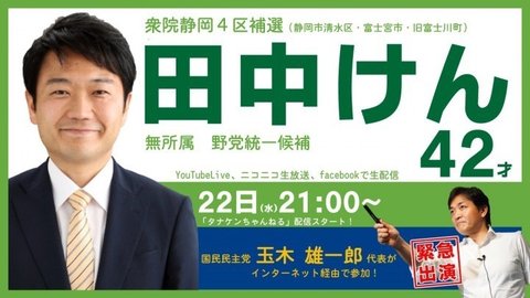 그래서 자민당을 견제하기위한 야당연합의 후보자인 타나카 켄을 투표할때 타나카 켄 42세까지 적어서 투표해달라고 공식트위터에 올라오는 일이 생김