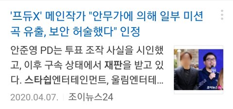 스타쉽은 현재 안준영에게 접대 순위조작 혐의로 재판중