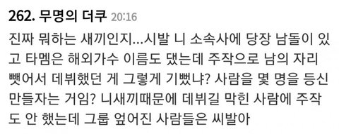 시청자 참가했던 모든 연습생에게 상처와 피해를 준 소속사 대표가 롤모델이라니 나는 도저히 이해가 안간다 ㅋㅋ