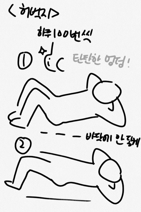 ☆☆☆☆하비들한테 추천한다 특히 응꼬 아픈 애들아..이거 꼭 해.. 나 이거하고 치질나음 그 외에도 땅끄부부 스쿼트 치면 종류별로 100개 하는거 나오는데 그거 하셈+엘자다리는 필수
