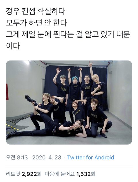 항상 다른 멤버들 튈 때 가만히 있다가 끝나면 갑자기 나옴ㅋㅋㅋㄱㅋㄱㅋㅋㅋ 예시로 유타랑 태용이가 소방차 추고나서 다 추니까 혼자 나와서 춤 개웃겨