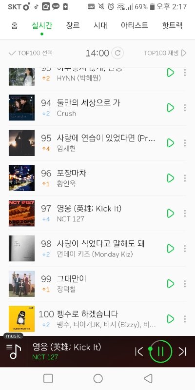새벽부터 내려가고있다 .. 제발 스밍좀 해줘 차트 아웃 할 거 같어....