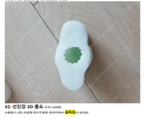 몰드에 갈라짐이 없어 몇번 사용안한 것으로 짐작하고