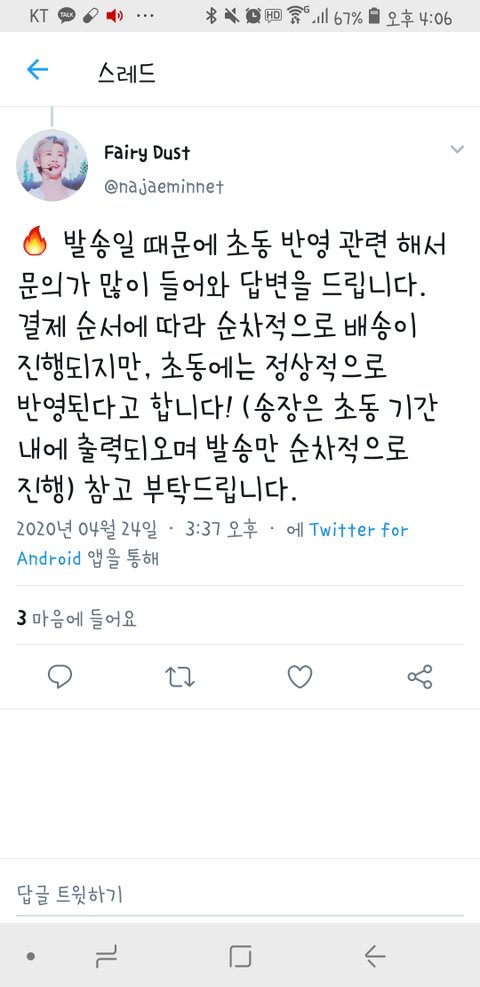배송은 늦어도 초동은 제대로 반영되나보다