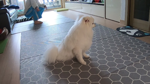 바닥에 내려서 간식으로 유인해도 앉아서 상체만 일으킬 뿐 다리는 전혀 움직이지 못하고..
