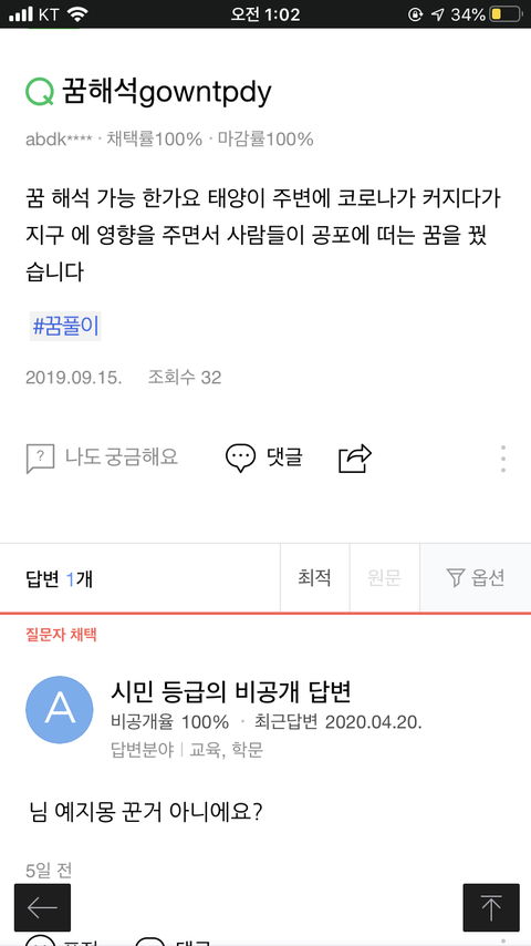 난 예전 부터 예언 하는 능력이 있었고 꿈에서 또 태양이 밝게 빛나며 주변 코로나들이 매우 커지는 꿈을 꾸었어 다들 또 조심해