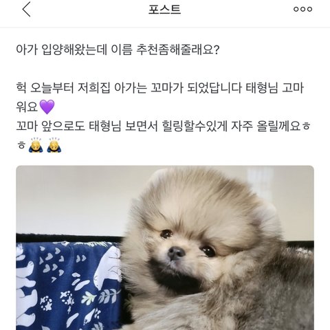 강아지 입양 했다는 아미한테 이쁜 강아지 이름 지어주기