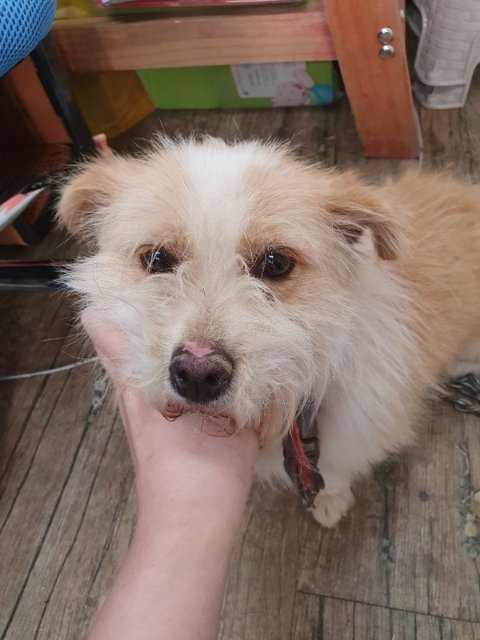 식당한켠 짧은줄에 매여 잔반처리를 하는 아이를 외면할수 없어 주인분과 협의후 데리고 왔습니다