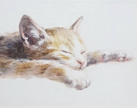 봄햇살에 잠든 아기고양이 입니다.유화로 그렸어요.