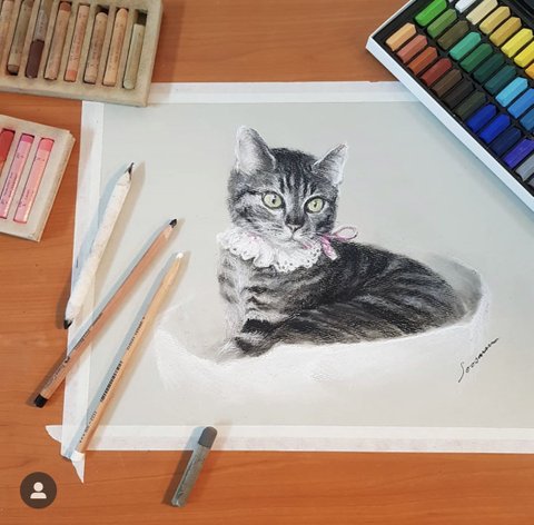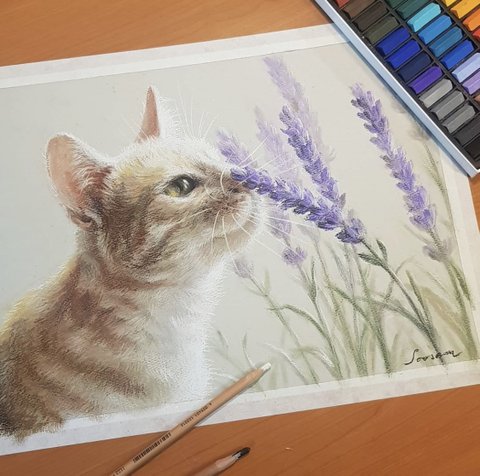 지인의 고양이 묘범이 파스텔 그림입니다