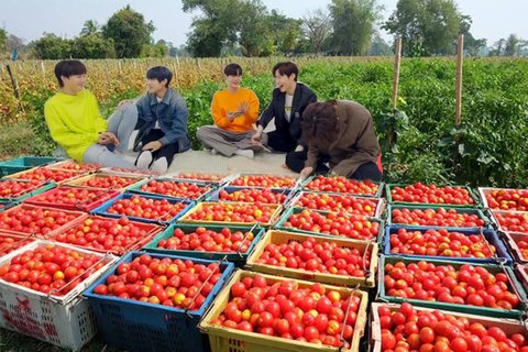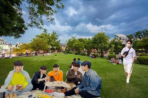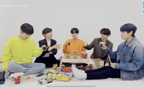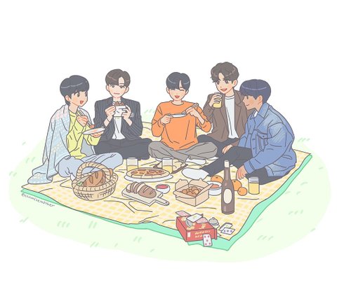 어제 AB6IX 가 단체 피크닉 브이앱 을했는데 밖에 못나가니 방구석 세트에서 피크닉방송을 했어