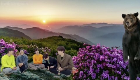 브이앱 내용에 맞추어 사슴에 곰까지등장!