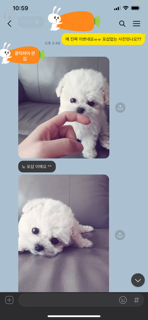2020년 04월 01일 비숑분양을 알아보던중에 인스타를 분양글을 보고 **숑 애견샵에 카카오톡으로 연락을 했습니다