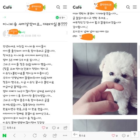 * 카카오톡으로 보내주었던 사진은 네이버 모 카페에 2020년1월16일날 올라온 분양글의 사진이었음