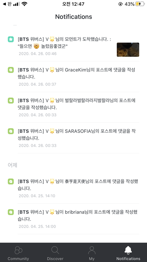 우리 태형이 꼬박꼬박 위버스 들어와서 아미랑 소통해준다 ㅠㅠㅠㅠ 진짜 귀엽지 대단하다 역시 태형이의 아미사랑