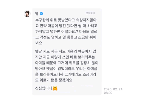 항상이렇게 좋은말하고싶어하는 사람이고 팬들한테 사랑받고싶어하는 사람이 방탄소년단 뷔야
