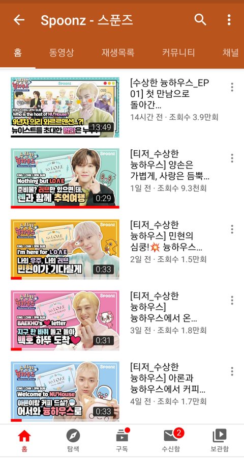 러브들아. 혹시 뉴이스트 스푼즈 유툽채널 영상 봤니???