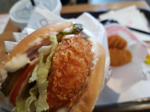 점심 치즈베이컨통살버거, 할라피뇨너켓, 콜라