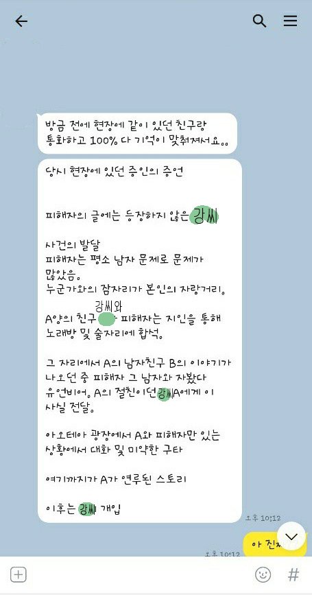 현장에 있던 다른 목격자와 카톡한 내용을 받은 캡쳐본