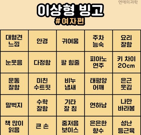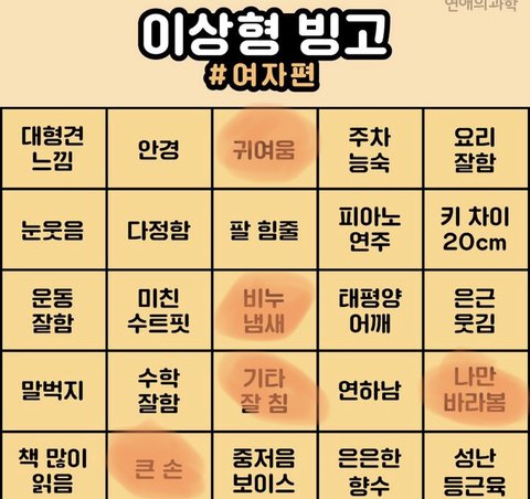 This is my 이상형빙고