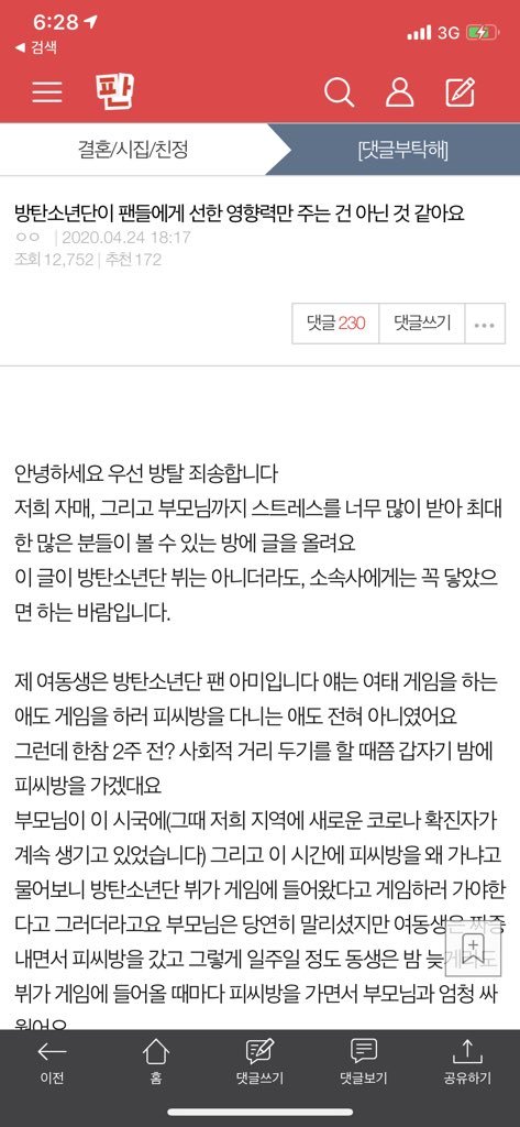 마지 방탄소년단 때문에 팬들이 이렇게 산다는 식으로 도용으로 글을 조작했습니다.