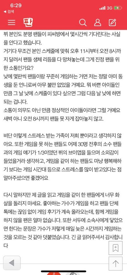 뷔 씨가 게임 속에서 _목을 한다며 방탄소년단 안티들에게 욕을 먹는 걸 봤습니다.