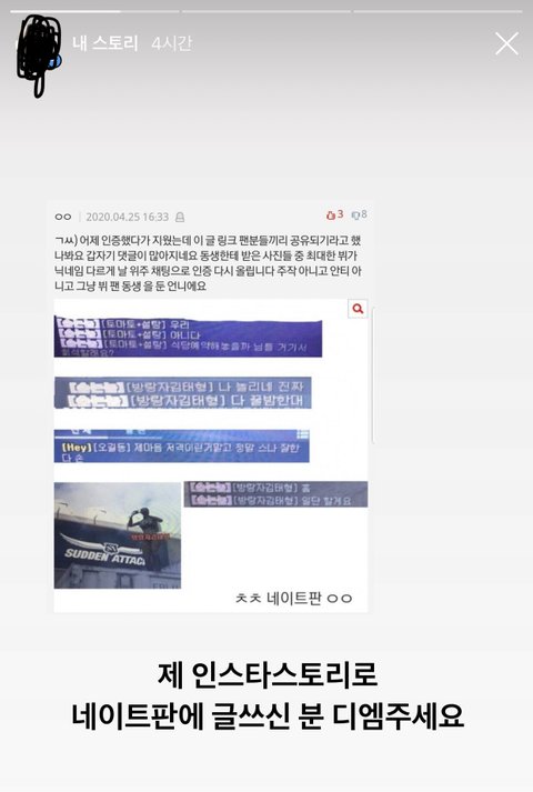 어제 이 글을 발견한 즉시 스토리에 제 글 캡쳐한 사람 나오라며 찾았습니다.