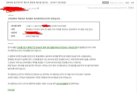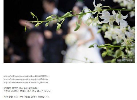 3개월 전,  제가 진행한 본식스냅사진업체에 대한 불만글을 네이버 다이xx카페에 올렸습니다.사진궁금하신 분 이어지는 톡 구경하시면 됩니다.