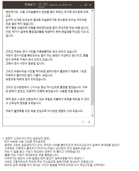 그리고나서 지난주 아래의 업체후기를 금요일에 다시 쓰게되었습니다.2번에 적힌 이유때문이었습니다.해봤자 3장? 만원정도되는 금액입니다.돈이아까워서? 회사에서 점심안먹고 커피안먹으면 되는 금액인데요..나는 아직도 이 사진생각만하면 화가나고내가 왜 여기서했을까 후회하는데, 대처방식이 너무 화가나서 글을 다시 쓰게되었습니다.