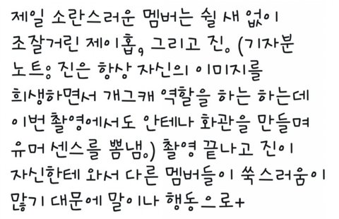 요기서 제일 감명깊었던건 석진이가 언짢았다면 죄송하다고 사과했다는거.... 생각이 깊다