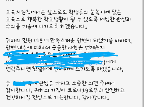 마지막 사진은 불과 한달전, 교육청으로부터 받은 답변입니다.