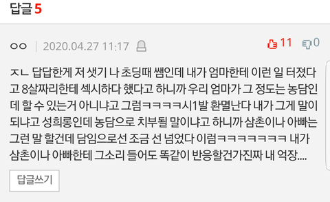 제 조카에게라도 이런댓글 불쾌할것같은데