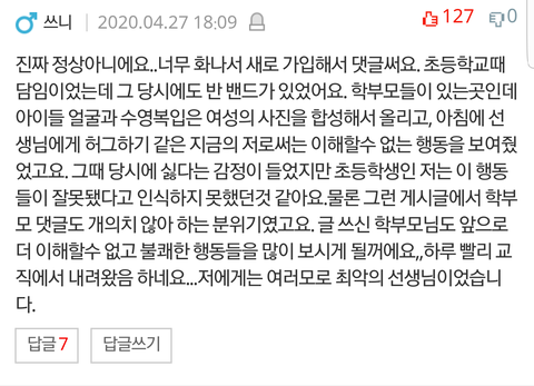 과거 저 선생님께 피해본 학생의 댓글입니다.