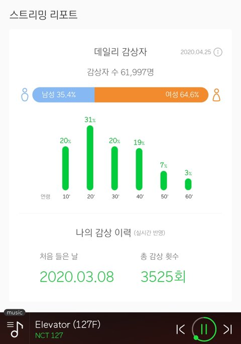 멜론 기준으로 말할게 스트리밍 할 때 챙기는 두 차트 실시간차트랑 일간차트가 있어 일간이 높으면 주간 월간이 높은 건 당연하구