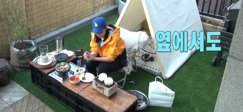 혼자 집에서 캠핑하는 거 보고