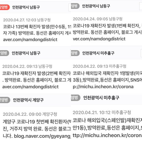 1. 우선 인천 재능대학교는 인천 동구에 위치해있습니다. 현재 인천에서 코로나 바이러스 확진자가 눈에 띄게 증가하고 있는 상황은 아닙니다. 하지만 재확진자의 수도 점점 증가하고 있는 추세이고 계속해서 활동을 자제하라는 재난 문자는 계속 오는 상황입니다. 또한 대학교 특성 상 인천에서만 오는 학생들로 이루어지진 않습니다.