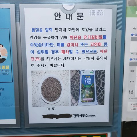 *** 맹독성 유박비료는 개/고양이와 같은 동물뿐만 아니라 사람들, 흙장난하는 어린아이들에게 엄청나게 치명적인 독입니다. 거주하시는 주택 근처에 살포된 유박비료가없는지 제발 꼭!!! 확인해주세요!!!! ***