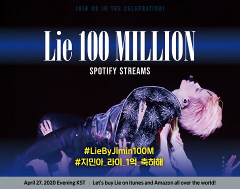 지민이의 레전드 솔로곡 라이가 방금 스포티파이에서 1억 스트리밍을 달성했어