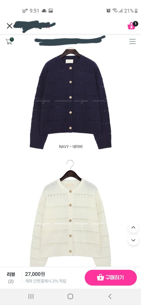 요즘 이런 펀칭가디건에 빠져가지고 이디자인 사려고하는데 아이보리vs네이비 아직도 결정못함ㅜㅠ