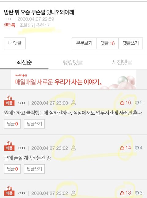 대놓고 네이트판에서 관리질을 시작하죠 여기 뿐아니라