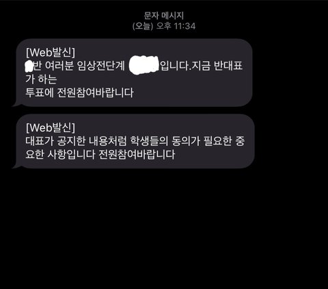 지금 진행하는 투표에 전원 참여 바랍니다. 대표가 공지한 내용처럼 학생들의 동의가 필요한 중요한 사항입니다.