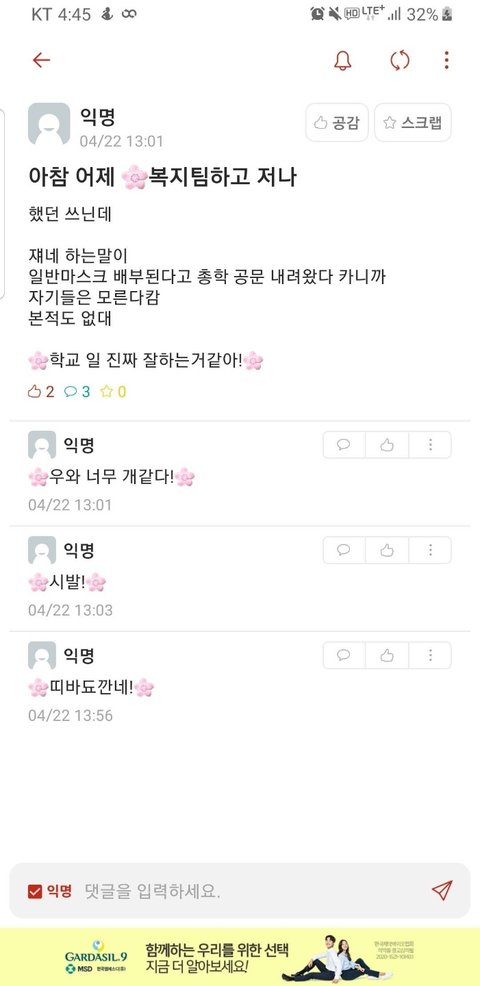 저희 대학교 네이트판에서 굉장히 이슈가 되었던 것으로 압니다.