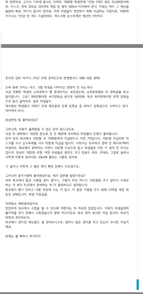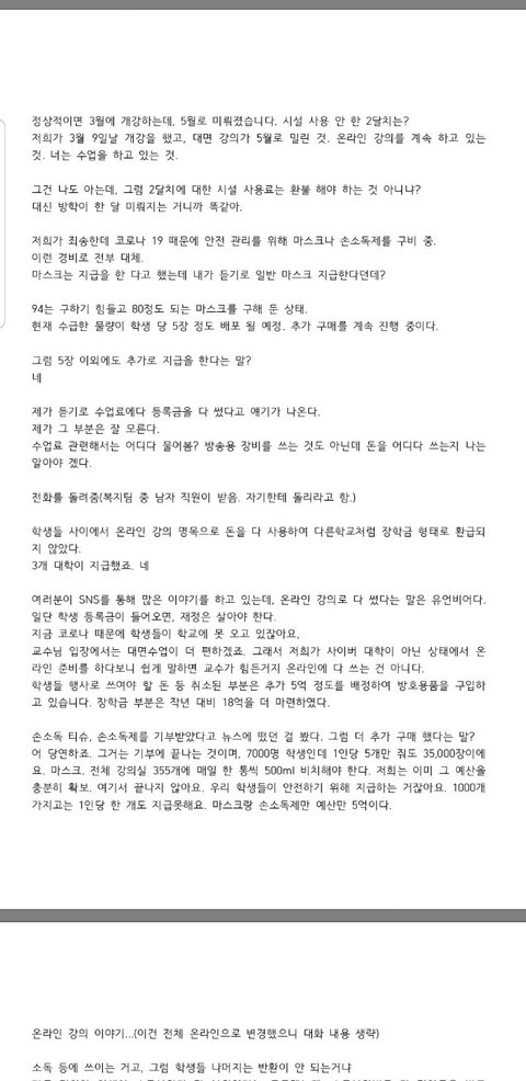 그 일은 일단 전체 비대면강의 시행으로 결과가 나왔고 잘 해결되는 줄 알고 좋아했습니다만,