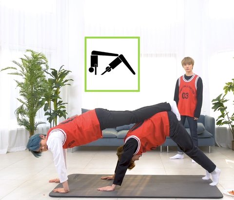 수빈이가 들어올린 소파 위 태현이를 손으로 받아서 안고 버티는 최연준...